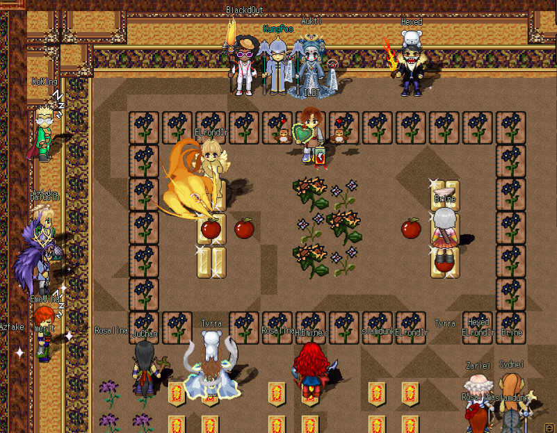 SunMoon Clan chose a more physical activity, arming denizens with a penchant for flying apples to participate in a game of dodgeball at their clan hall. The classic points-based tournament proved who was lost in the sauce, versus who wasn't a friend of gravity and unable to dodge flying fruit.