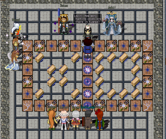 S7 tournaments are always a well-received event for any festival, and the Haean one wouldn't have been complete without the hosting of one from the Spy path over in the Stealth Grotto. For those unfamiliar, two fighters (a rogue or warrior) are set opposing one another on horizontal lines, and asked to use vita attacks on their opponent before they can receive one themselves. In a tally-based system, a successful and clean strike yielded a point, with the first to three points moving on to the next tier of the tournament.